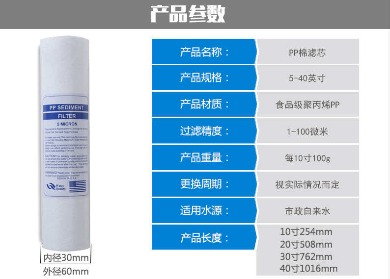 產品型號: 5寸、10寸、20寸、30寸、40寸